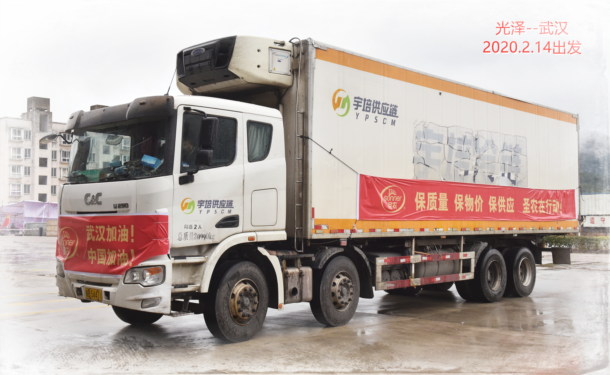 2月14日,350vip浦京集团集团旗下恒冰物流运载着10吨鸡肉制品从光泽出发运往武汉,这些鸡肉将提供给武汉天翼鲜食食品有限公司,用于其供应抗击疫情一线机构餐食(同济医院、协和医院、第四医院、第七医院、第九医院、中部战区总医院、硚口政府防疫指挥部等38家抗击疫情一线医疗、政府机构!)