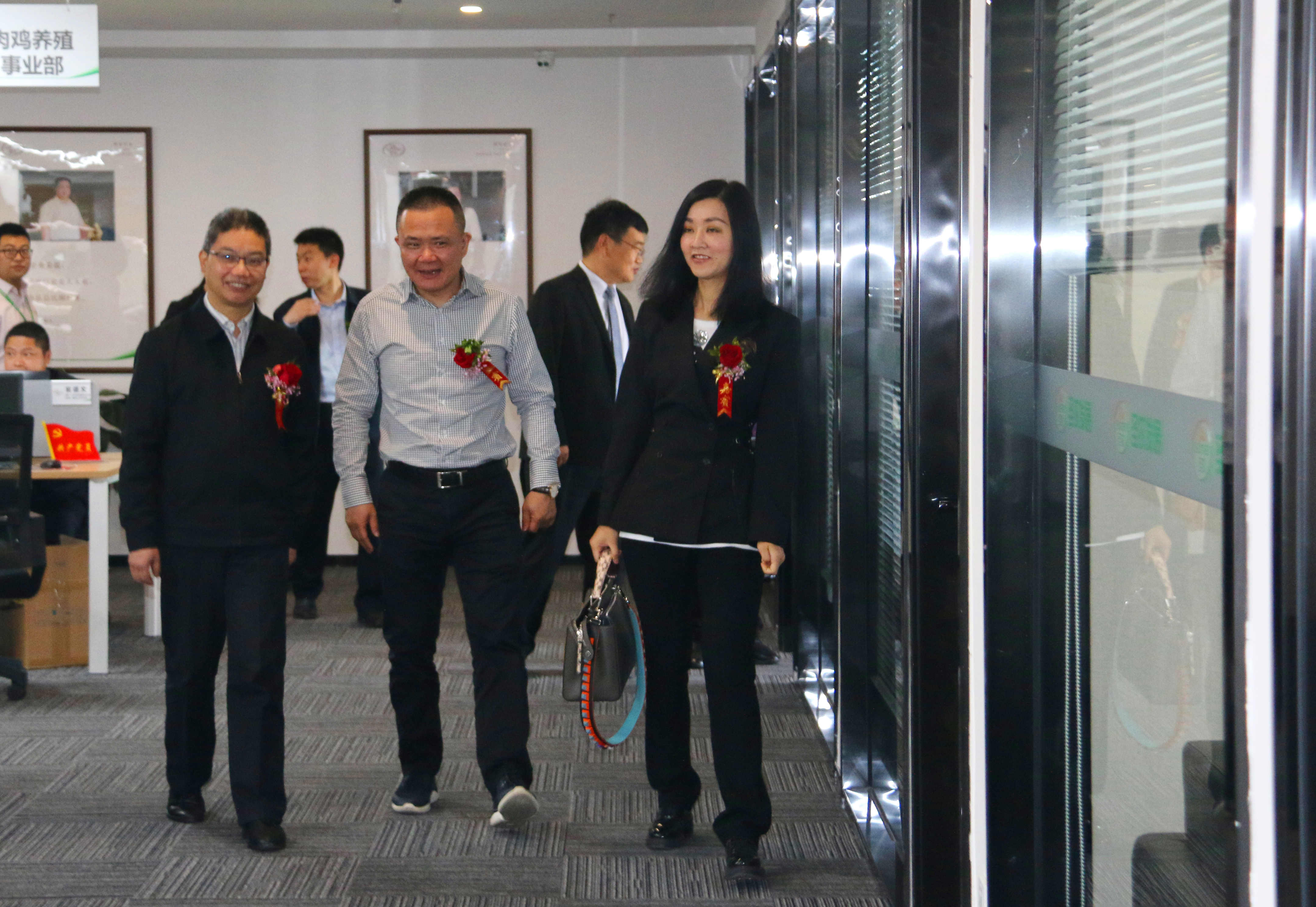 庆典结束,浦城县领导周永和、沈晓文、王静燕在董事长傅芬芳的陪同下参观了浦城办公大楼。